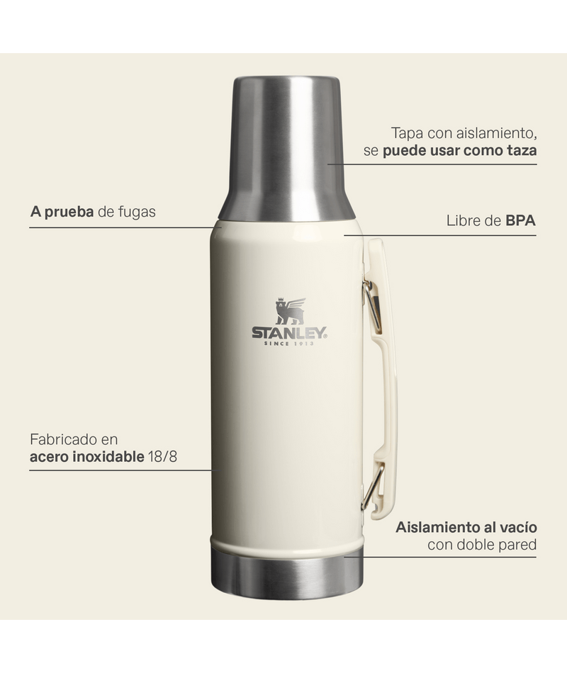 En Argentina, el mate es una bebida muy especial que se comparte en todo momento y lugar. Y para hacer que esta experiencia sea aún más especial, Stanley ha creado el Termo Mate System Classic 1.2 lts, el compañero ideal para disfrutar del mate en cualquier situación. Con tecnología exclusiva, este termo cuenta con un tapón de altísima precisión que permite una cebada perfecta con fluido continuo de agua en el lugar correcto. El tapón tiene la pendiente ideal para verter el agua directamente en el punto que desees. Además, la tapa de acero inoxidable se convierte en mate para que puedas disfrutar de tu mate en cualquier lugar. El Termo Stanley Mate System Classic 1.2 lts mantiene tu agua a la temperatura ideal, por lo que podés disfrutar de tu mate caliente o frío durante horas. Este termo está diseñado con la calidad y durabilidad que se espera de Stanley, lo que significa que puede durar muchos años de uso intenso y de disfrute, ya sea solo o acompañado. No lo pienses más y obtén el Termo Stanley Mate System Classic 1.2 lts para hacer que tu experiencia de mate sea aún más especial.