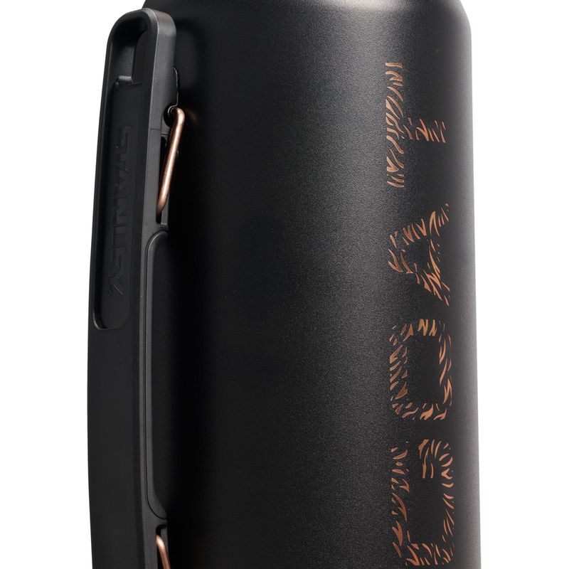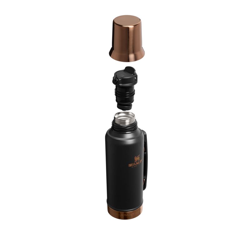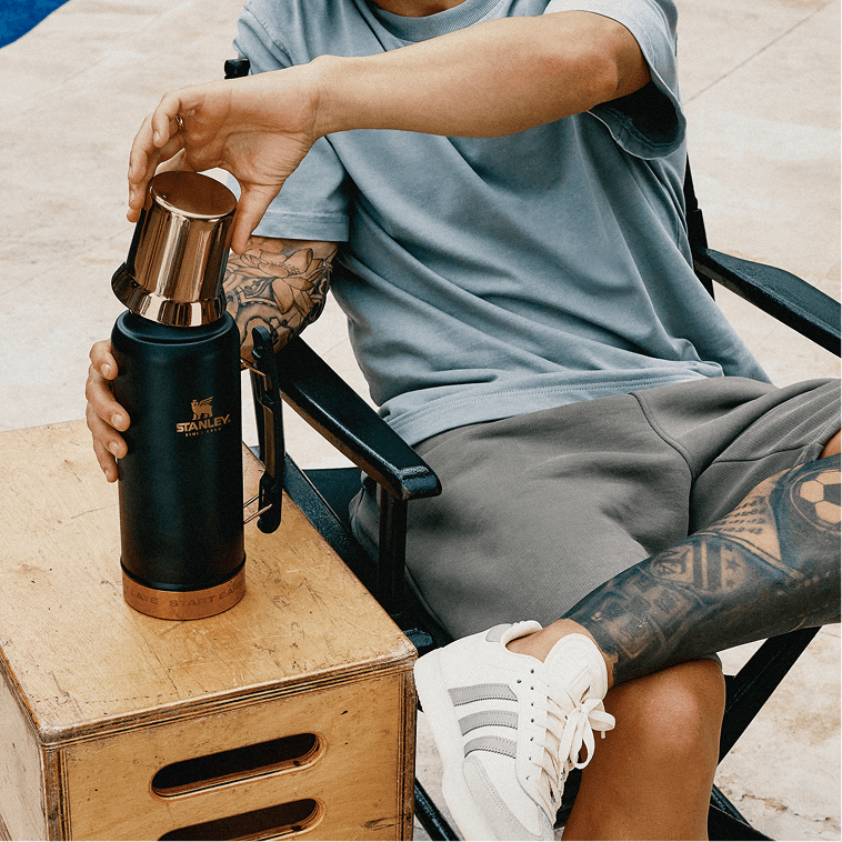 Start early. Stay late. Ese es el secreto. Esta colección Messi x Stanley 1913 en color negro Black Pebble viene con detalles en color oro rosado pulido que celebran un legado construido a base de años de trabajo duro y dedicación, y, de vez en cuando, un poco de magia. El Termo Mate System de 1,2 l cuenta con un pico de alta precisión único que no hace falta girarlo. Con levantar la pestaña conseguirás verter un chorro continuo. La tapa diseñada con aislamiento para que sea usada como mate, para que puedas alimentar tu propia magia dentro y fuera de la cancha.