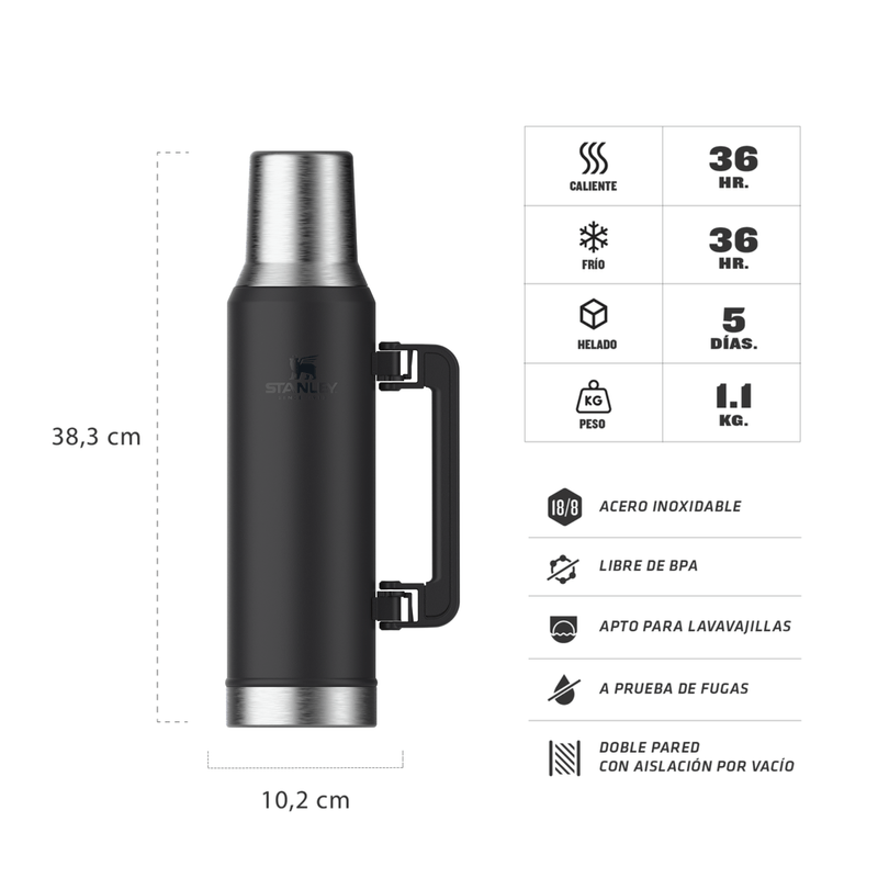En Argentina, el mate es una bebida muy especial que se comparte en todo momento y lugar. Y para hacer que esta experiencia sea aún más especial, Stanley ha creado el Termo Mate System Classic 1.6 lts, el compañero ideal para disfrutar del mate en cualquier situación. Con tecnología exclusiva, este termo cuenta con un tapón de altísima precisión que permite una cebada perfecta con fluido continuo de agua en el lugar correcto. El tapón tiene la pendiente ideal para verter el agua directamente en el punto que desees. Además, la tapa de acero inoxidable se convierte en mate para que puedas disfrutar de tu mate en cualquier lugar. El Termo Stanley Mate System Classic 1.2 lts mantiene tu agua a la temperatura ideal, por lo que podés disfrutar de tu mate caliente o frío durante horas. Este termo está diseñado con la calidad y durabilidad que se espera de Stanley, lo que significa que puede durar muchos años de uso intenso y de disfrute, ya sea solo o acompañado. No lo pienses más y obtén el Termo Stanley Mate System Classic 1.6 lts para hacer que tu experiencia de mate sea aún más especial.