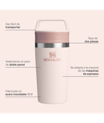 Chiquito pero rendidor. Este vaso térmico compacto es ideal para llevar tu café: mantiene un espresso bien caliente o una bebida con hielo bien fría durante horas. Viene con un diseño mejorado y más espacio en el asa. La tapa de dos piezas es 100% a prueba de derrames y permite tomar cómodamente. ¡Además entra perfecto en el portavasos del auto!